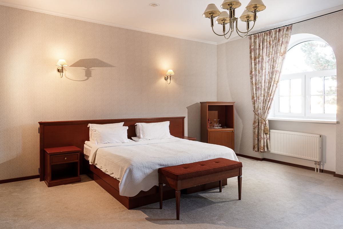 Номер состоит из 1 комнаты и санузла с душем. Меблировка: одна двуспальная или две односпальные кровати, кресло. В номере есть телевизор, мини-бар, сейф, телефон, фен.