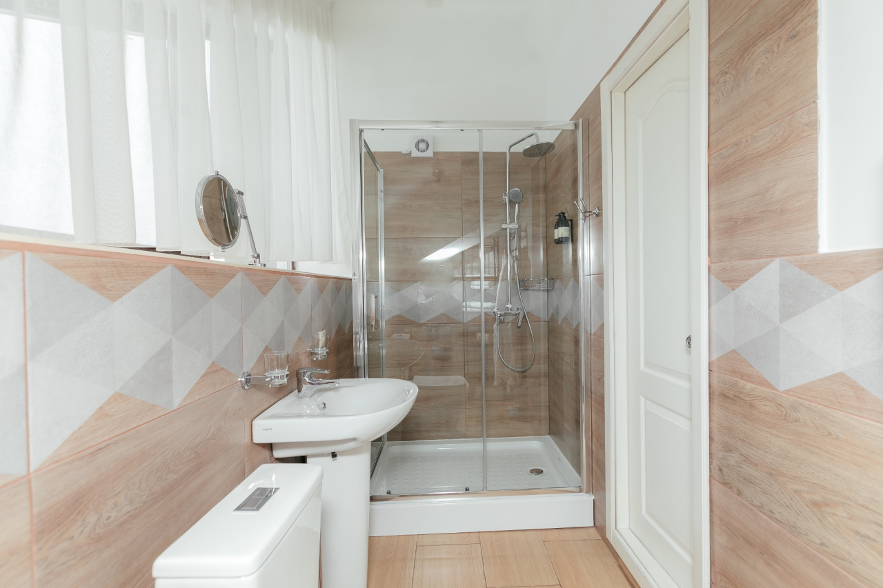Санузел: душ, раковина, зеркало, унитаз, халаты, тапочки, фен, гель, шампунь, набор для гигиены полости рта.