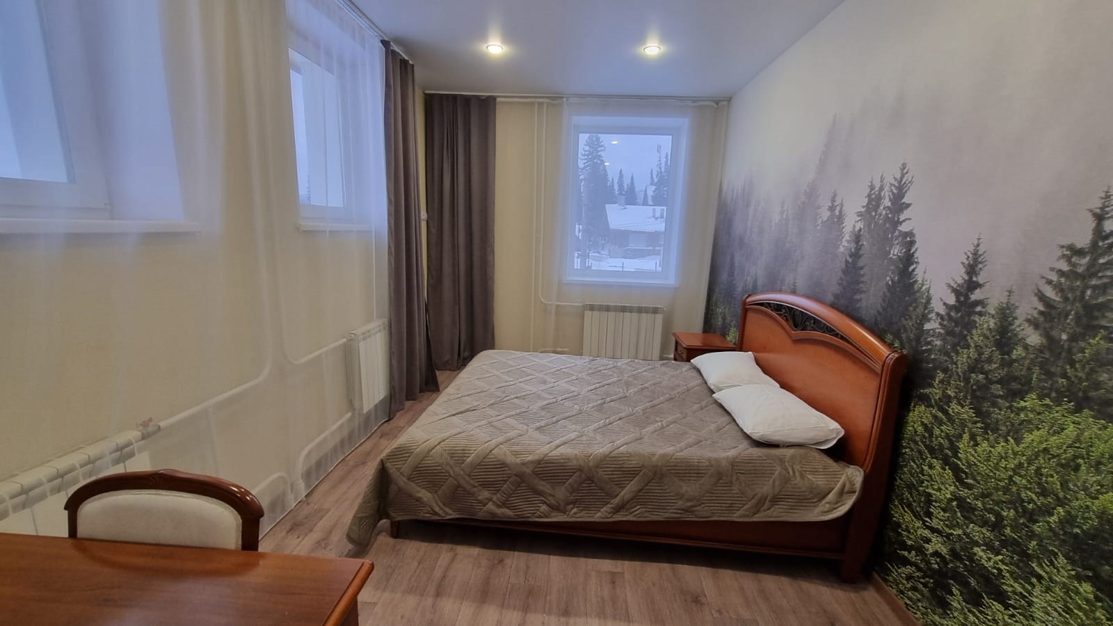 Однокомнатный номер: две раздельные односпальные кровати, одна двухъярусная односпальная кровать, 2 прикроватные тумбы, шкаф для одежды, журнальный столик, вешалка, телевизор. Санузел: раковина, унитаз, душевая кабина, зеркало. 1+1+1+1 основных места/ 0 дополнительных мест.